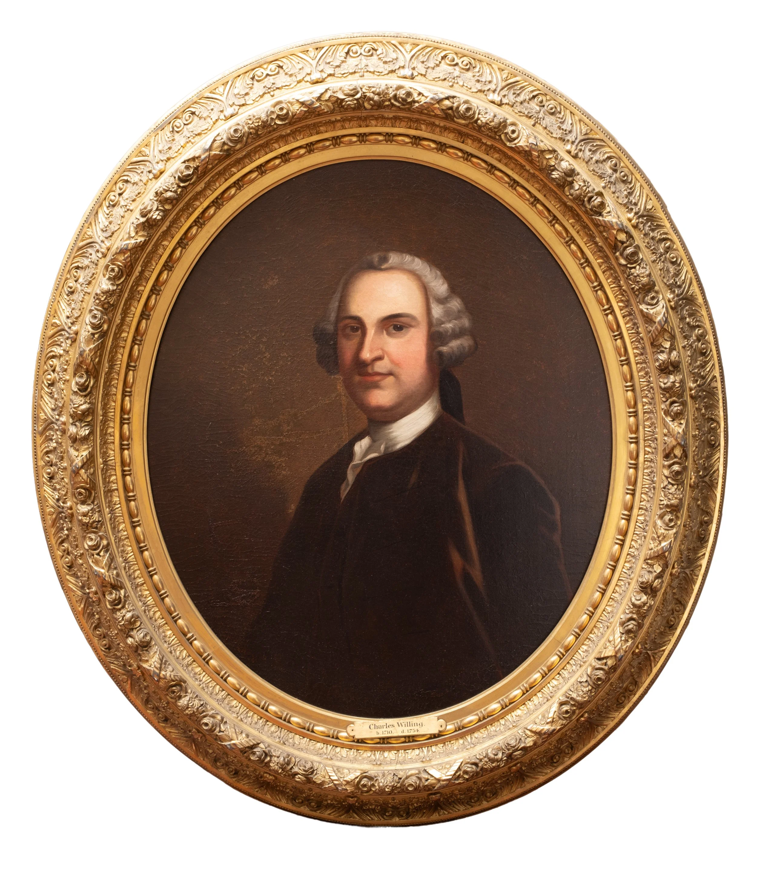 A striking portrait believed to be by John Wollaston, showcasing Charles Willing – the mayor of Philadelphia from 1749-1754. The collection features items, including Chinese export porcelain, handed down through generations.